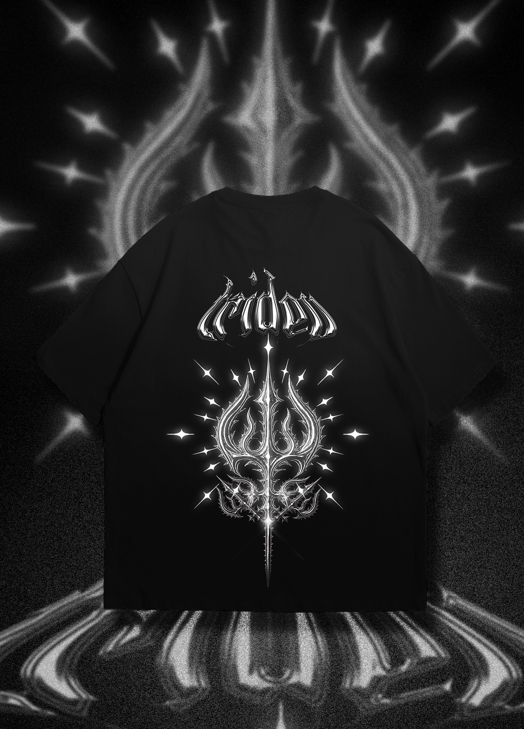 This tee features a bold, minimalist FML mark on the front and a fire-forged Trishul emblazoned on the back - a cosmic weapon reimagined for modern rebellion. A symbol of power, balance, and transformation, built for those who carry presence without saying a word.