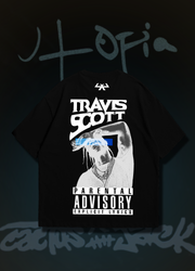 One side shows chaos: Travis in mid-meltdown, typography styled like a mixtape cover, complete with a bold "Parental Advisory" stamp. Flip it, and it's blackout mode — just “FML” in unapologetic bold. It’s a choice: be seen or stay shadowed.
